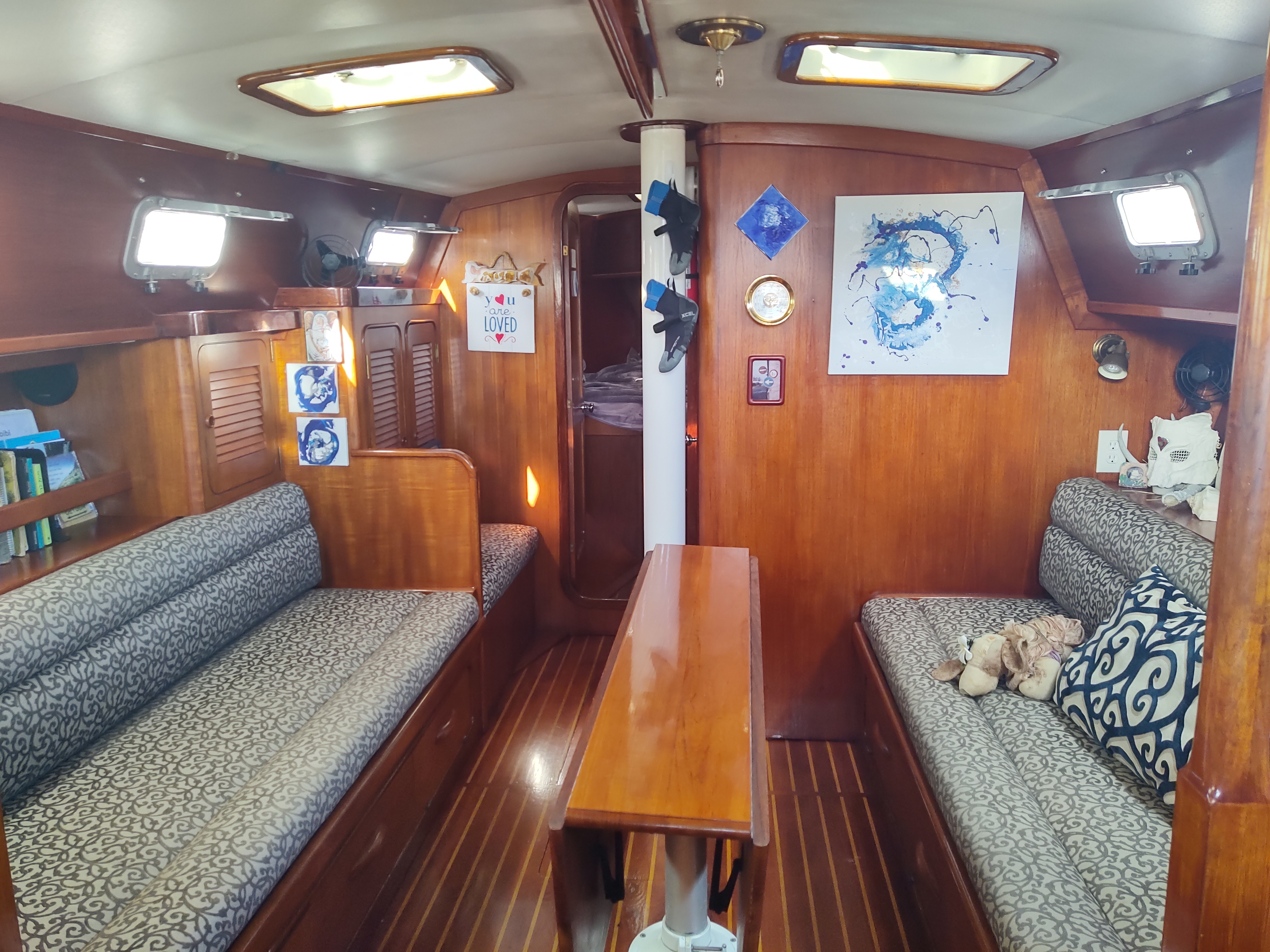 Habibi and I went for a spin yesterday, leaving the laguna for the first time since the water pump failed, more than a month ago. Free at last! Light wind, calm sea, a glorious day to be out and about. I practiced my new mantra: listen, learn, love. I listened to the engine — sounds steady, bilge pump not active, therefore no leak. I learned what air and water current do to Habibi’s speed, depending on whether we’re with (faster) or against (slower), something I knew theoretically, but now know kinesthetically. And I loved the sea, every single moment. Scared sometimes, yeah, but never gonna give her up.